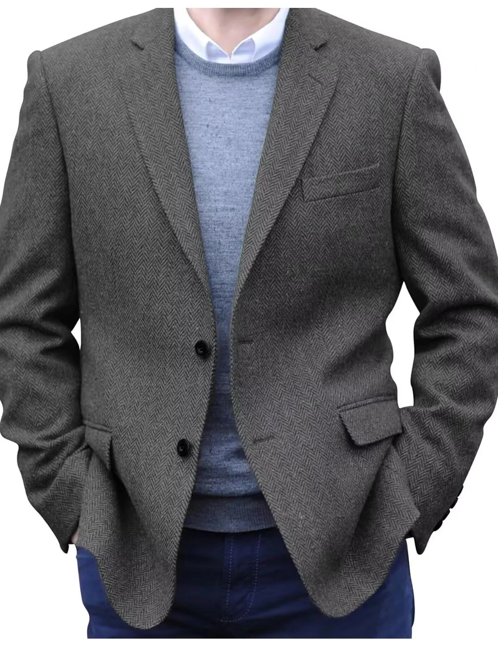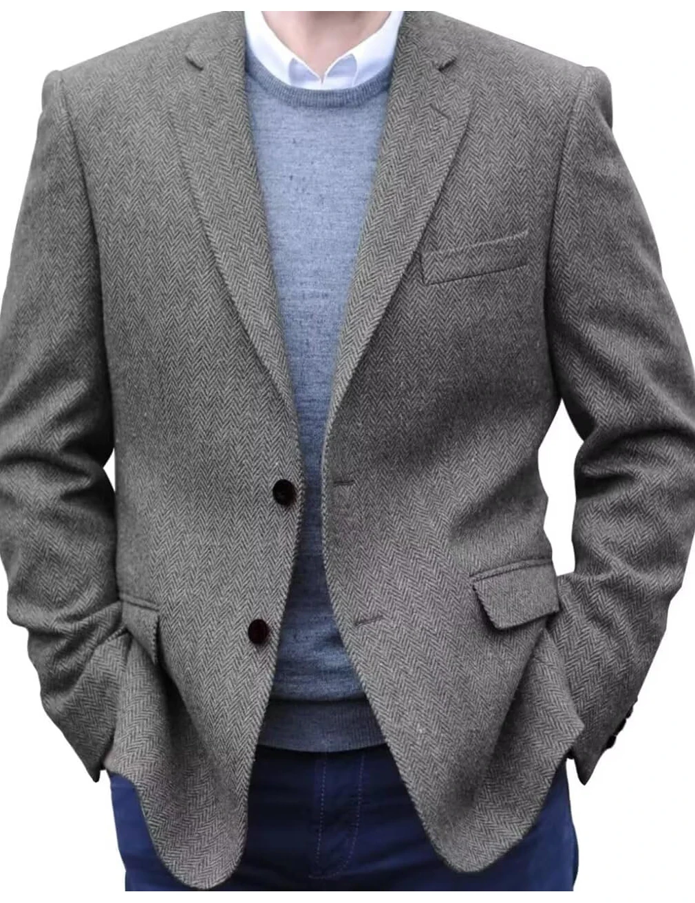 Crafted from high-quality herringbone tweed, this blazer offers a classic vintage look with a modern twist.