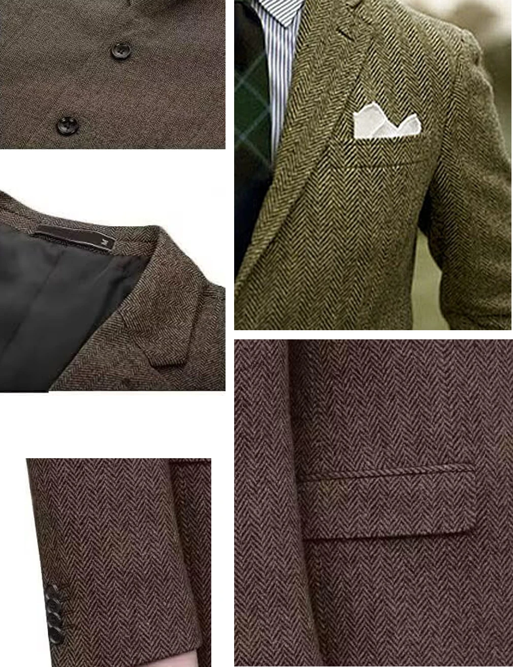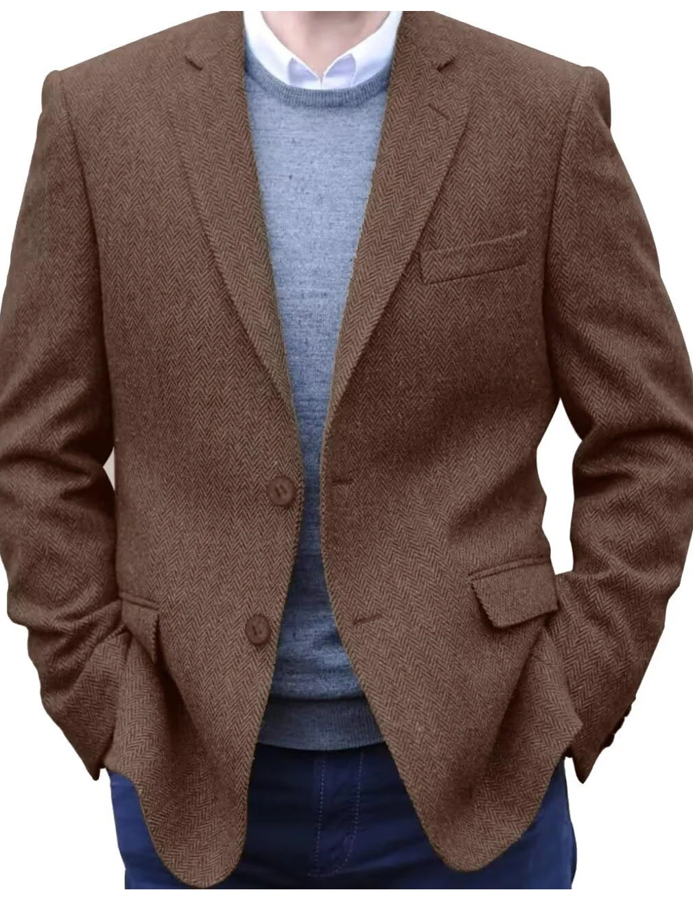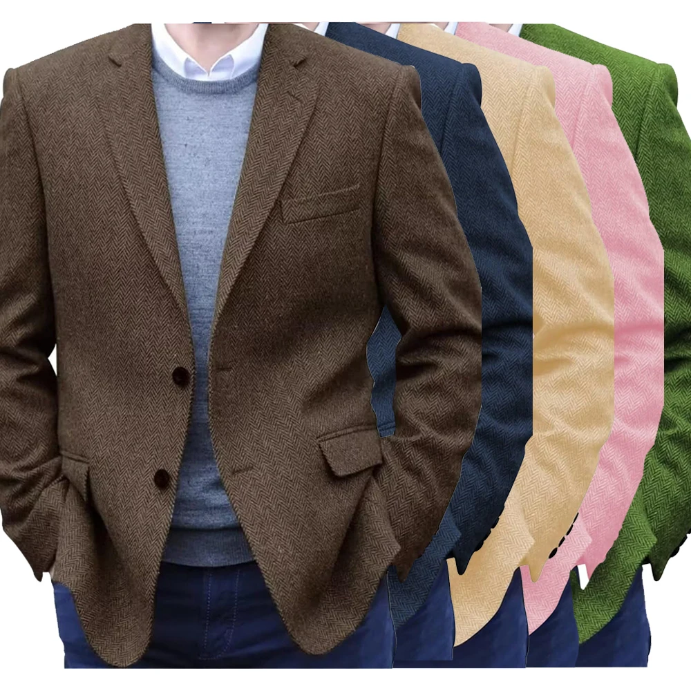 Premium Men’s Suit Brown Blazer Prom Tuxedos Herringbone Tweed Single Breasted Formal Bussiness Jacket for Wedding(Only Coat)